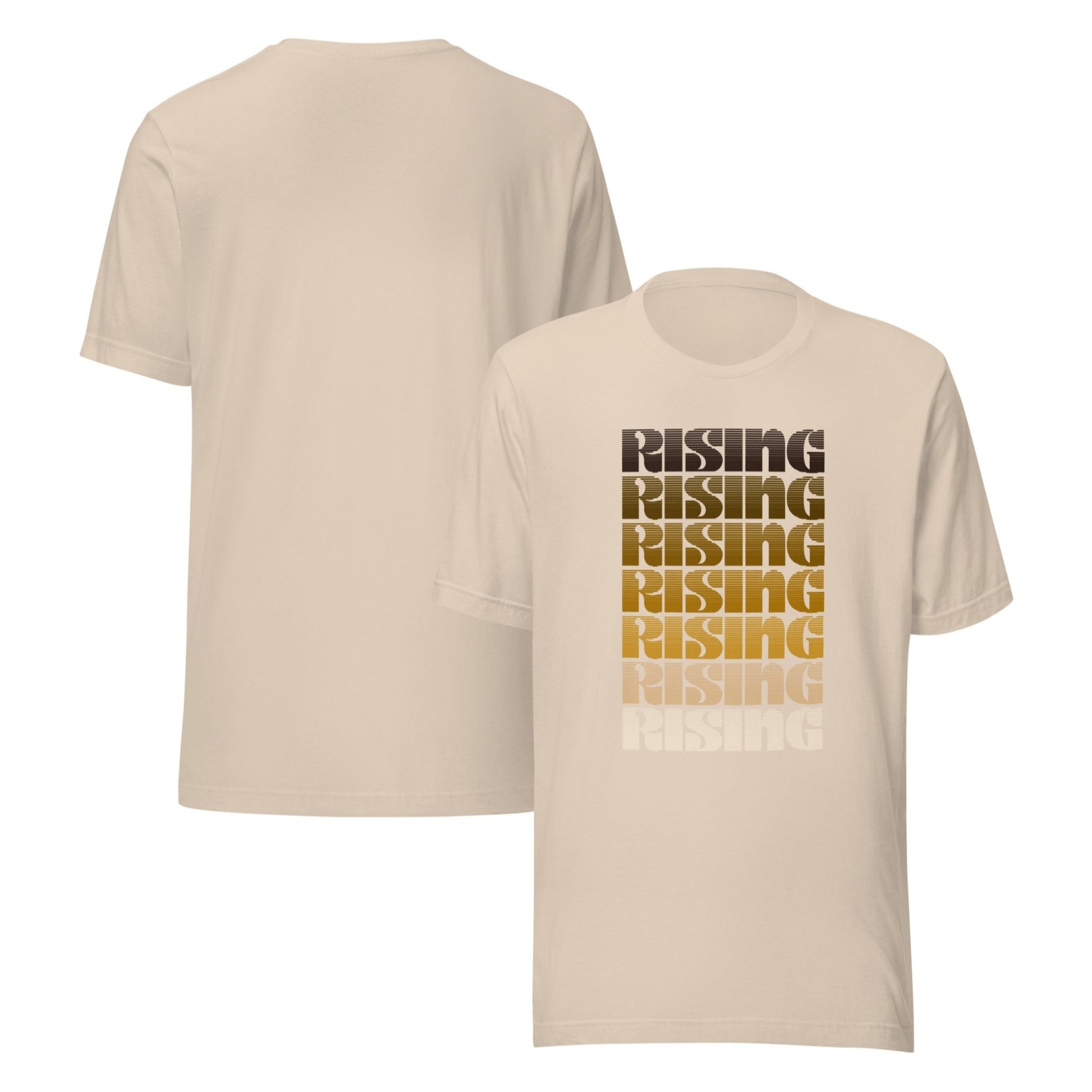 Retro-Inspired: Vivid "Rising" ombre graphic on the front.